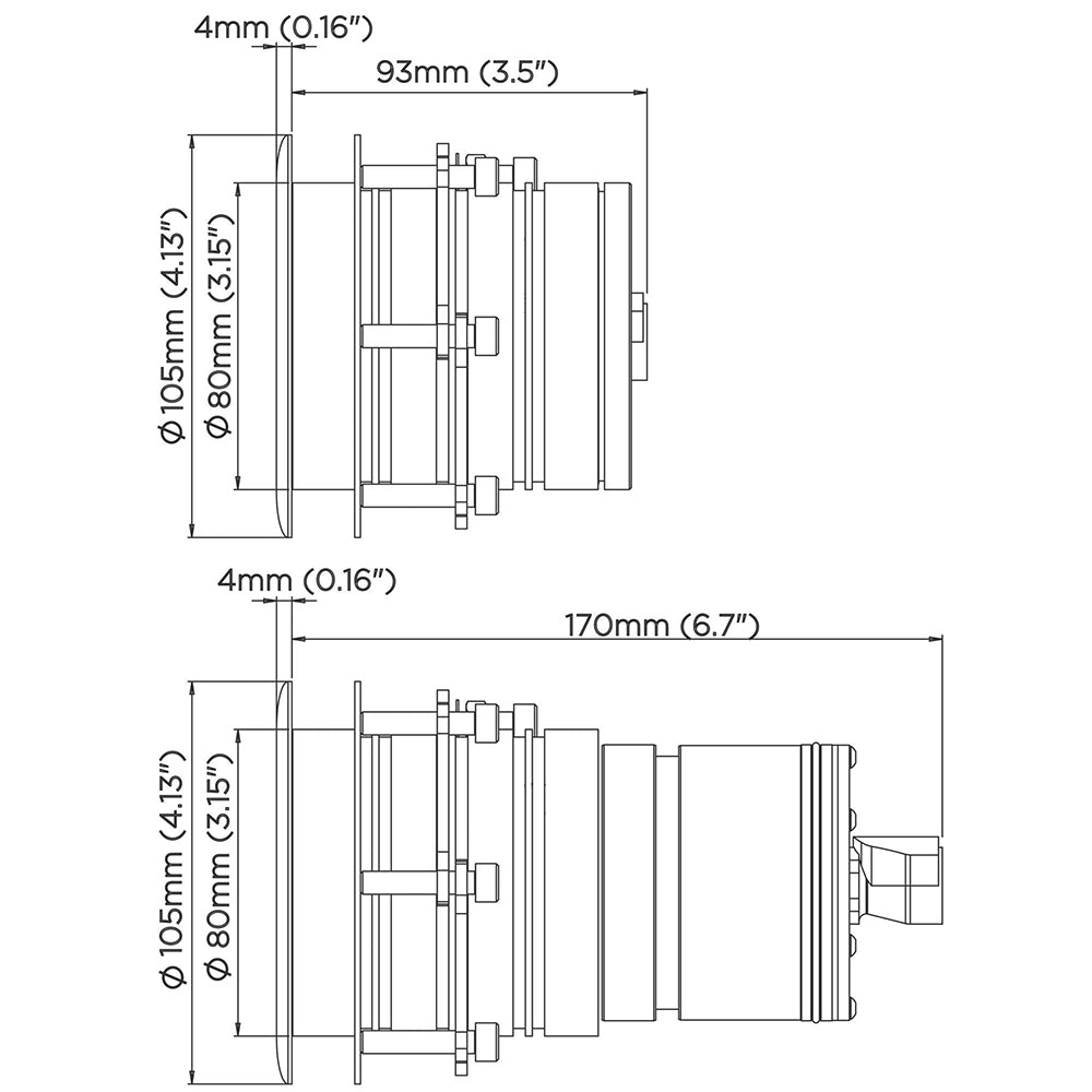 The ultra low profile outer face of the housing is designed for vessels wanting to go fast and have no impact on the speed or flow of water over the hull, perfect for the sides or running surfaces.