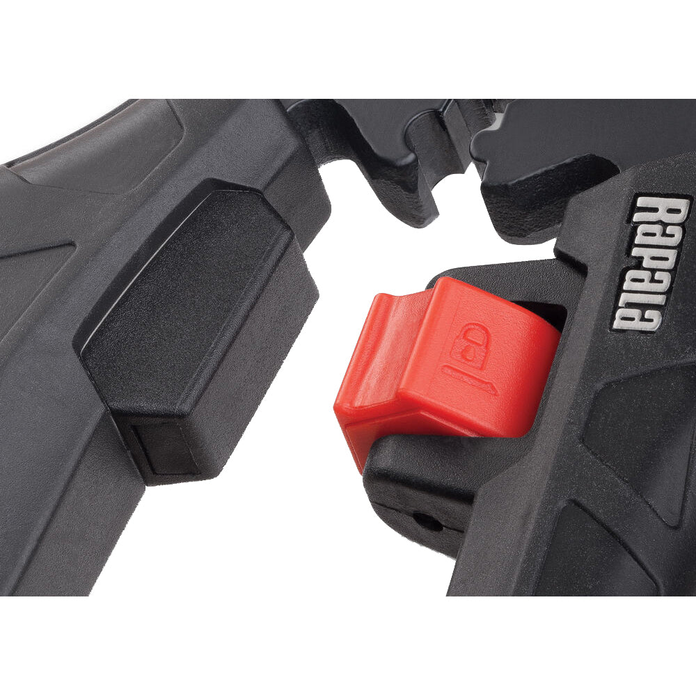 Rapala® Elite Pliers are armed by Cerakote® which is a high-performance, lightweight coating that protects against abrasion, corrosion & UV rays. “Mag Spring” keeps jaws open and ready, flip the switch & “Mag Lock” tightly secures jaws for safe storage. Hybrid jaws have interlocking front teeth that insures a lock-tight clasp on hooks. The flat area in the back is built for gripping lines and leaders and the Carbide cutters are replaceable and will cut all braid, monofilament, fluorocarbon lines along with light wire up to 15lbs.